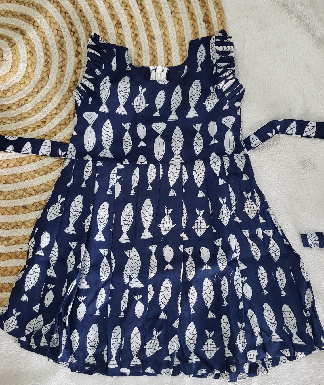 💙 Navy Blue Fish Print Pleated Frock – Description 💙